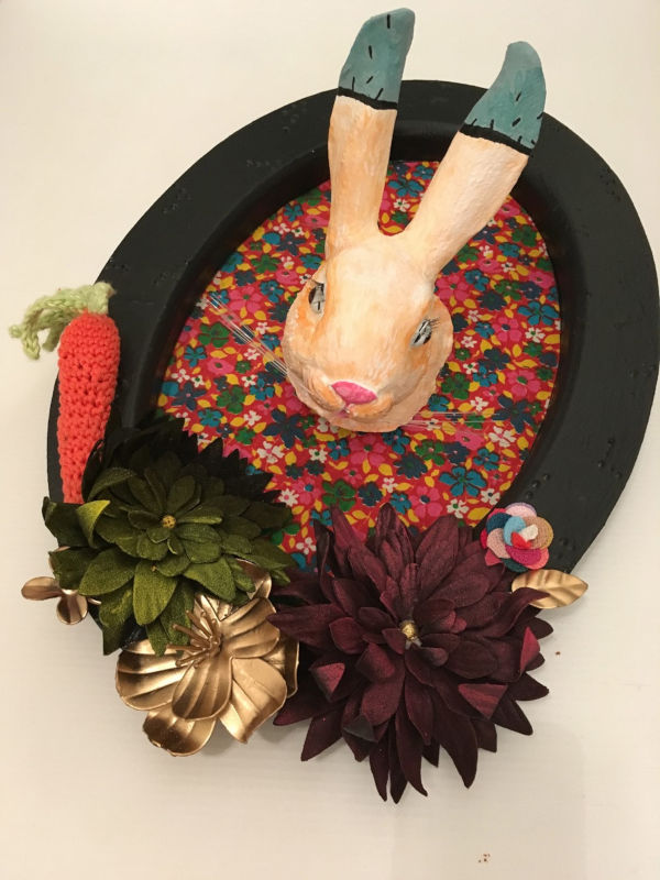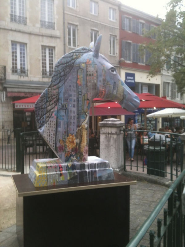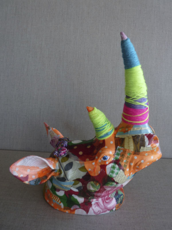 Techniques mixtes sur tête de cheval en résine.